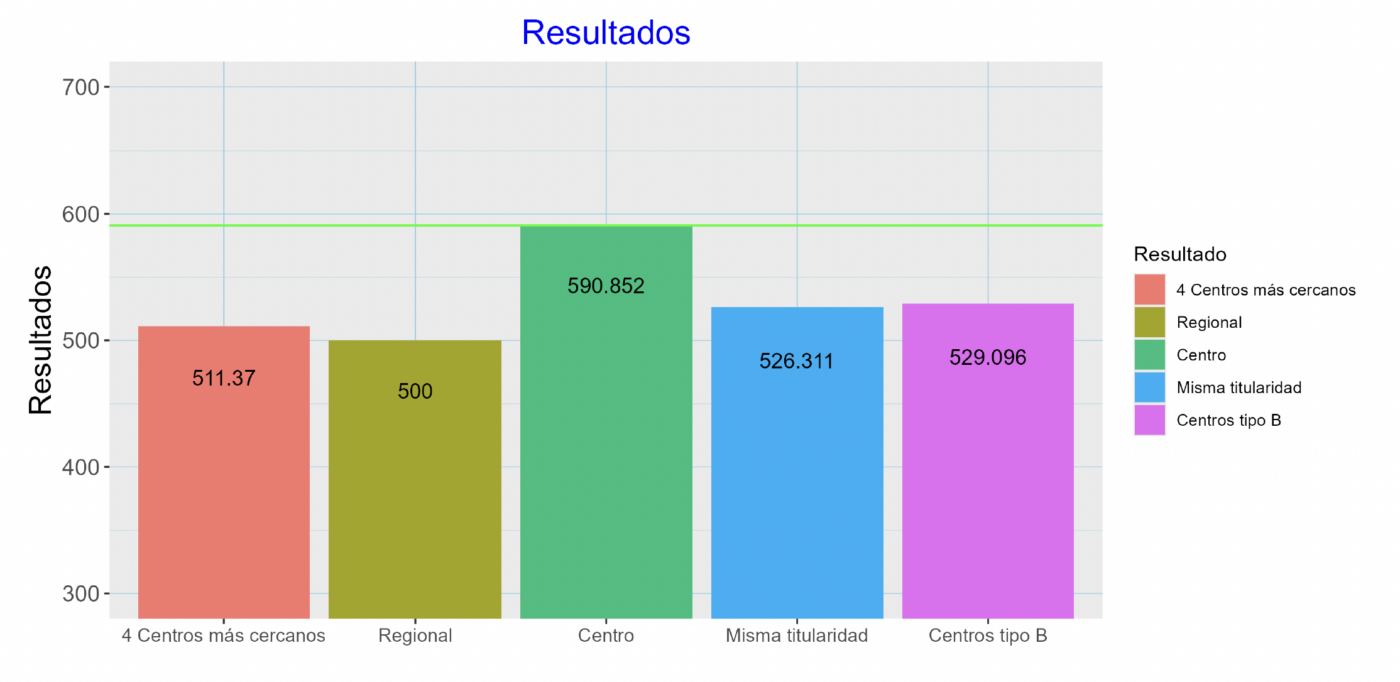 Puntuación tipificada: El centro destaca con 590,852 puntos, situándose muy por encima de la media regional (500) y de los centros más cercanos (511.37). Excelente progreso académico con una ventaja de 90.85 puntos sobre la media regional, situándose en niveles de excelencia.